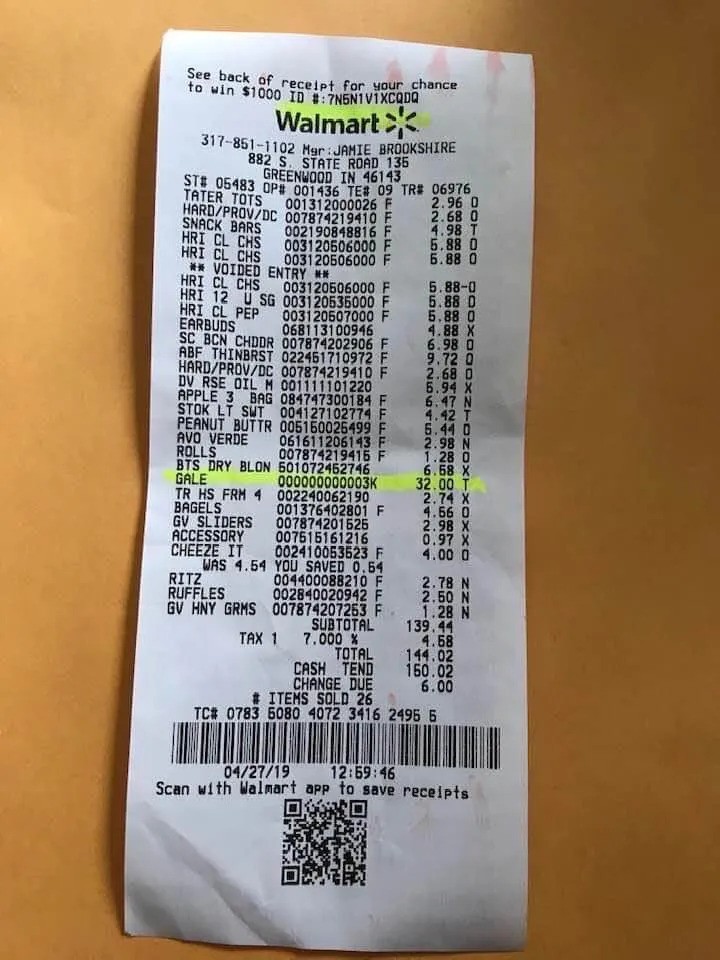 Consider the following receipt from Walmart